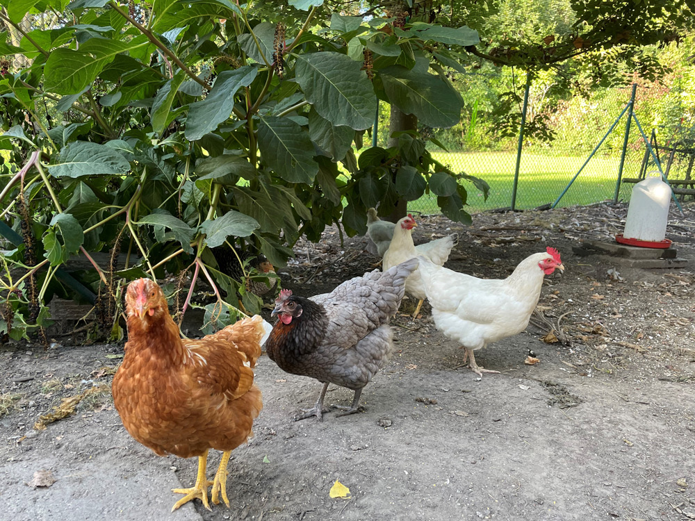 Tiere gibt es auch – im großen Garten neben dem Johanneshof leben unsere Hühner.