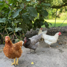 Tiere gibt es auch – im großen Garten neben dem Johanneshof leben unsere Hühner.